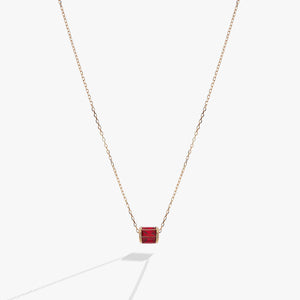 Celebrate July birthdays — or just add a touch of bright red to your look — with this July birthday precious pendant necklace, which features a barrel-shaped ruby-hued crystal charm in a 14K gold setting. Ruby is the color of love. Wear it with an open heart.