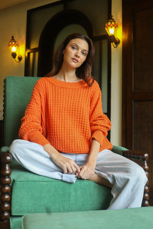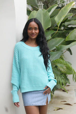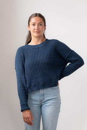 A beautiful chunky but soft, basket weave knit sweater - perfect for sailing or transitioning into Fall season.  In 100% certified organic cotton, fully fashioned sweater knit. Ethically made.  Our best-seller!