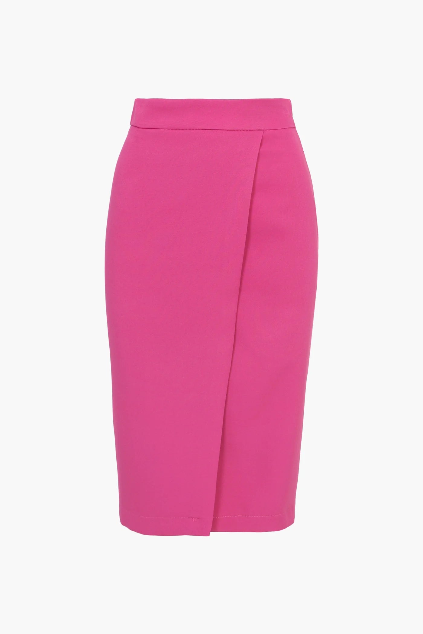 The Karla High Waist Pencil Skirt is the perfect combination of comfort and style. Its stretchy waist band ensures a perfect fit while its asymmetrical slit adds a touch of fun flirty flair to any outfit. Unmatched in comfort and style, this pencil is a must-have for any wardrobe.