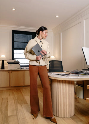 Crafted in a rich golden brown, modern hue with copper hardware accents, this jean feature a flattering 32" inseam and a curve-enhancing fit that feels as good as it looks. Finished with a conscious touch — a vegan leather YJ patch — this timeless style blends comfort, confidence, and sustainability for women who do it all, in style.