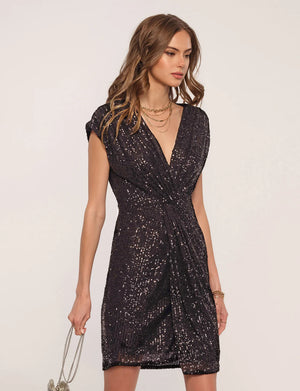 The ultimate special occasion piece, the Angeline Dress is an eye-catching holiday must-have. This sparkling stunner features a wrap front bodice. The perfect dress for any holiday party, it's perfect for celebrating and will bring in endless compliments.