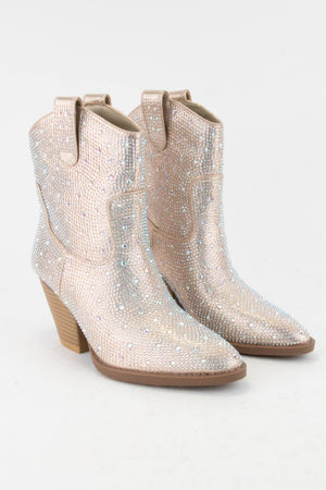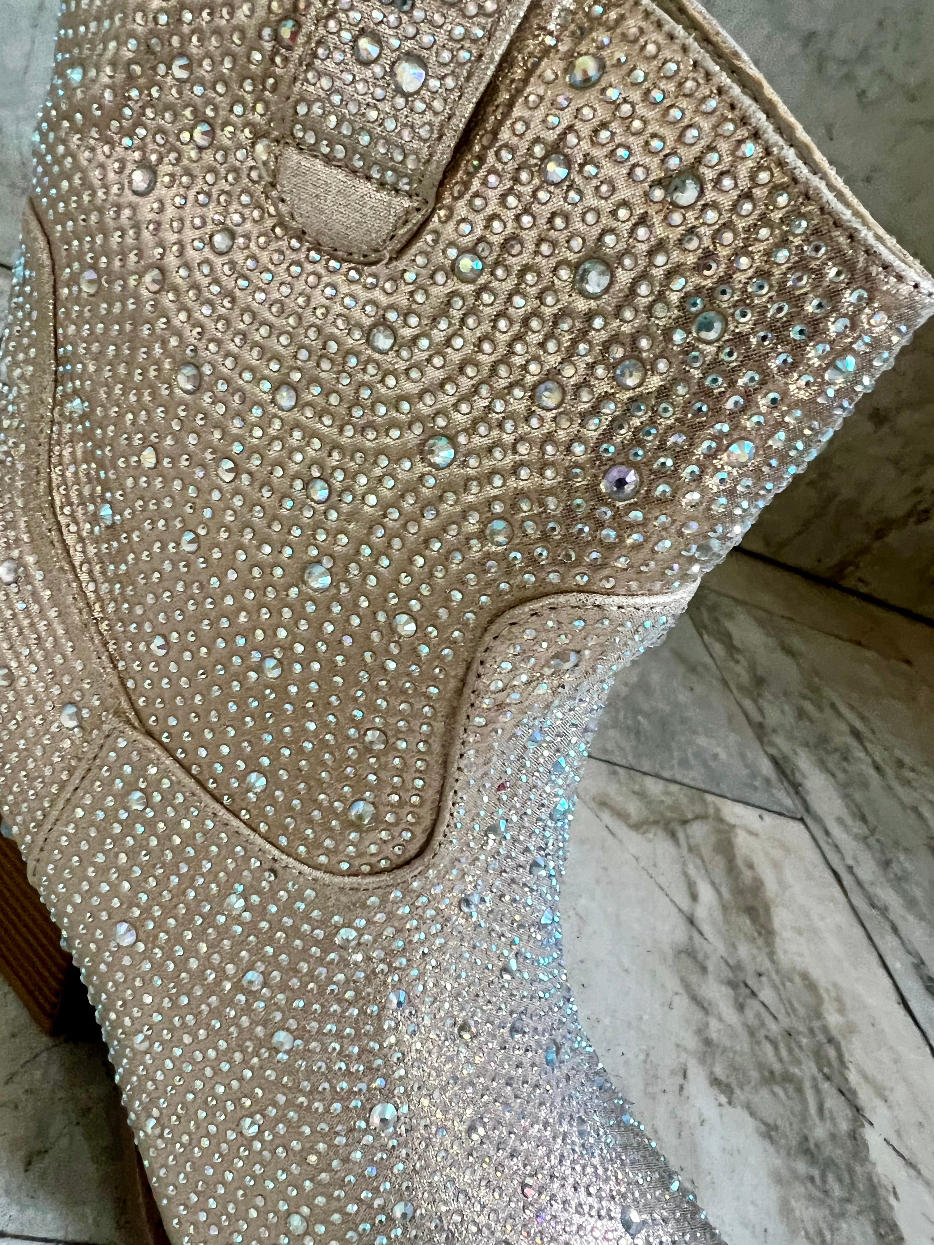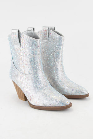 POINTED-TOE RHINESTONE DRESSY BOOTS CHUNKY HIGH HEELED PULL-UP STYLE IDEAL TO PAIR WITH AN EVENING DRESS OR HOLIDAY LOOK