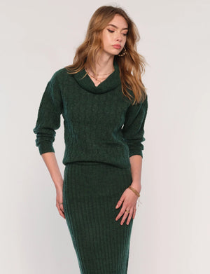 The Oliviera Set is a no brainer. It is knit with a uniform cable stitch from a super soft, cozy yarn. The skirt features a tighter stitch while the top remains relaxed. Both items can be worn seperately to form different outfits.