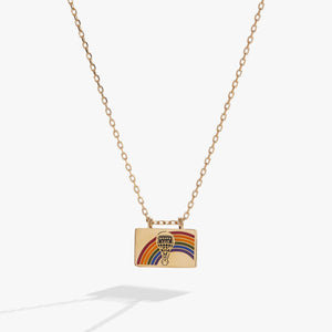 Follow the Yellow Brick Road to timeless Wizard of Oz jewelry. This necklace features a charm that flips open: on top, there's a rainbow and a hot air balloon, and on the inside, an inscription saying "There's no place like home." Wear it to celebrate 100 years of the classic film.