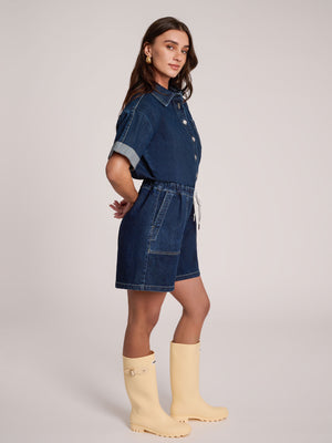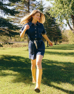 Meet your new favorite piece—the Botanical Blue Short Sleeve Romper. Crafted from lightweight denim, this romper offers the perfect balance of support and breathability. Featuring an elastic waistband and front button-up design, it’s incredibly versatile and can be styled in endless ways. Whether you're dressing it up or keeping it casual, this jumpsuit is designed to be worn and re-worn, making it a must-have addition to your wardrobe.