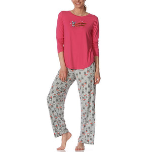 HUE Printed Knit Tee and Pant 2 Piece Pyjama set is perfect for gifting! The set includes: a long sleeve relaxed fit top with front design and novelty print pyjama pants with a comfort elastic waistband. Custom-designed and hand-drawn by HUE in-house NYC studio artists, bringing one-of-a-kind character and charm to your sleep wardrobe.