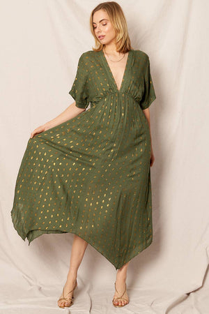Kimono Sleeve Lurex Polka Dot Maxi Dress 95% Viscose 5% Lurex | Lining: 100% Cotton