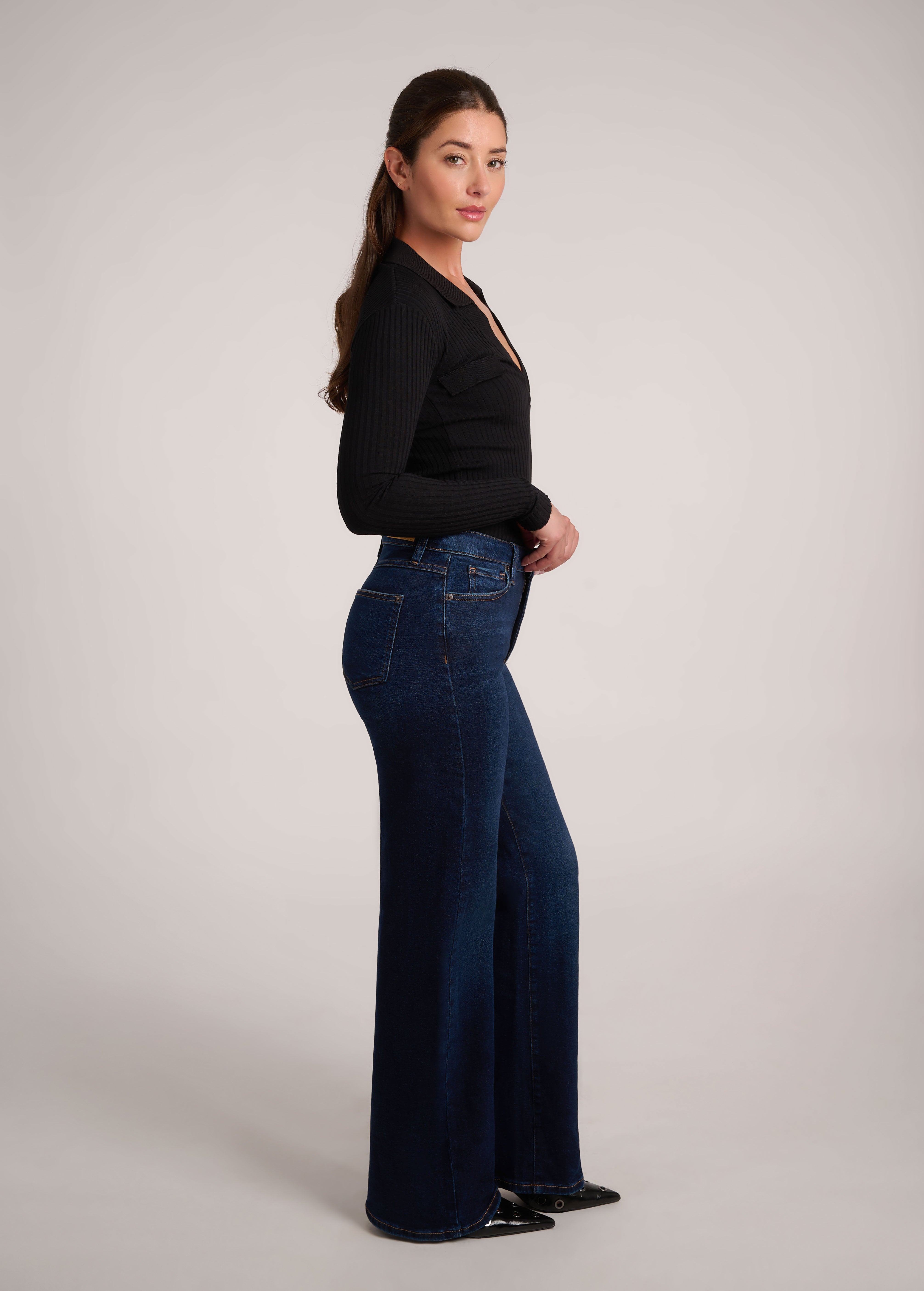These dark indigo jeans feature a timeless wash, flattering classic rise, and a 32" inseam. Pair them with a tee and flats for day or a printed top and heels for night.