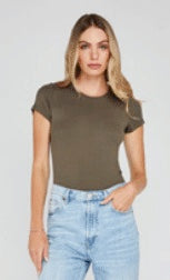 The Clara is a fitted crewneck tee made of a stretchy ribbed fabric. It’s an essential layering piece that can easily be dressed up or down.