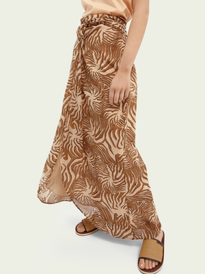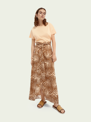 With an overall print and knot detail, this skirt has a gorgeous draped design. Its midi-length gives it a relaxed look, whilst the lining and hidden zip closure showcase the high-quality tailoring gone into this piece. Pair with a simple t-shirt for a sunshine ready outfit. Made with organic cotton: non-GMO seeds are grown on land free from pesticides and synthetic fertilisers, lower water use, and farmed using crop rotation which is better for soil health.