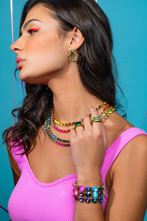 Introducing the Katie Stone Ring, a versatile piece that exudes sophistication and it is perfect for both casual and formal wear. It has an antique gold-plated finish & its adorned with a beautiful electric-colored center stone.