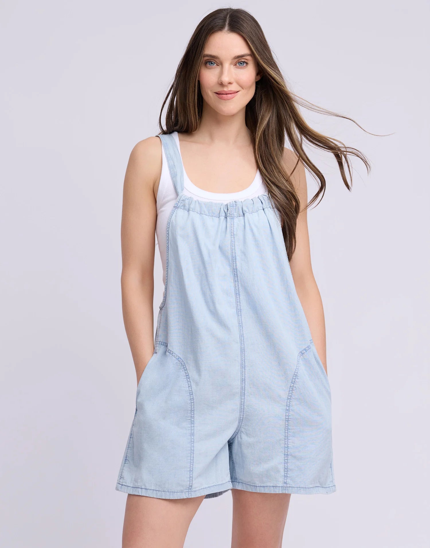 Meet Michelle, your new go-to romper in light blue. Crafted from soft, lightweight 100% no-stretch cotton chambray, this piece offers breathable comfort and effortless ease. Featuring a 4.5 inch inseam, it’s perfectly versatile for mixing and matching your favorite spring and summer looks casual or dressed up.