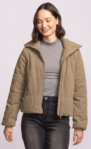 The Northfield Jacket is a lightweight puffer designed for effortless layering during chilly weather transitions. Featuring a soft corduroy texture, front welt pockets, and a high neckline, this versatile jacket brings both warmth and modern style. Pair it with a cozy sweater and pants for an easy, everyday look.