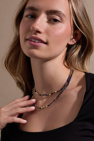 Celebrate adventure with the Not All Who Wander Are Lost Convertible Necklace/Bracelet. Featuring a 32.5" design that can be worn long or wrapped five times as a bracelet, this meaningful piece spells out "Not All Who Wander Are Lost" in Morse code using a mix of gold-tone metal beads and vibrant lapis semi-precious stones. Strung on flexible elastic for easy styling, it's a beautiful reminder that every journey is your own.