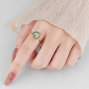 Description & Details The moon, sun, and stars became the representations of gods and goddesses throughout the years as ways to explain their presence and permanence. • Material: Solid 925 Sterling Silver ∙ Copper ∙ Cubic Zirconia • Finish: Hypoallergenic ∙ Gold Plating • Dimensions: 15 mm diameter, US size adjustable