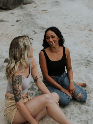 If you've ever needed something to wear underneath that go to sweater, like the East End or the Cross Front... Something that will not add bulk or show straps at the neckline. Or maybe you have a really great pair of high waisted bottoms! Enter the Primrose Crop Tank! Made to be your layering buddy. A simple cropped tank with round front and back neckline and fitted band at the bottom.