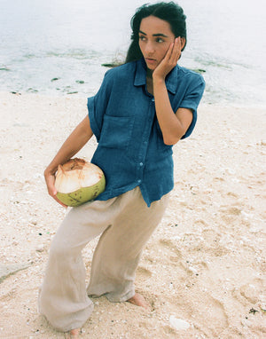 Meet the Remi Oversized Shirt—your go-to throw on shirt. Made from lightweight, breathable linen, this relaxed-fit essential is designed for laid-back days and vacation getaways. Featuring oversized pockets, a dropped shoulder, and recycled shell buttons, it’s the perfect throw-on-and-go piece for breezy summer vibes or city adventures.
