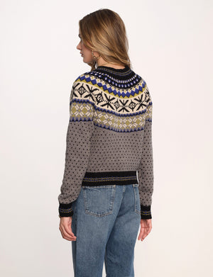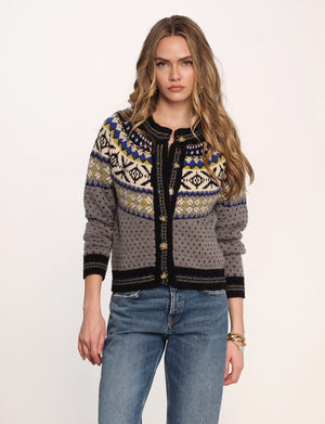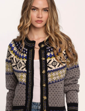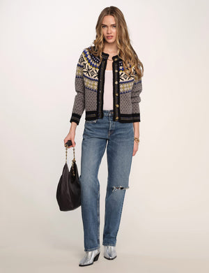 The Sylvia Cardi is super soft and super cozy. It features many cute little stitching details of an all-over fair isle pattern with contrast rib stitching around the neck, front, hem, and cuff. Pair over a white tee and jeans for an effortless fall outfit.
