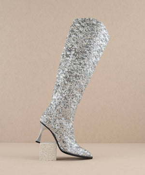 Knee high sequin high heel boot