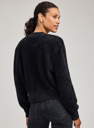 The Theodora cardigan is made of a plush yarn. The effortless silhouette is an essential layering piece.